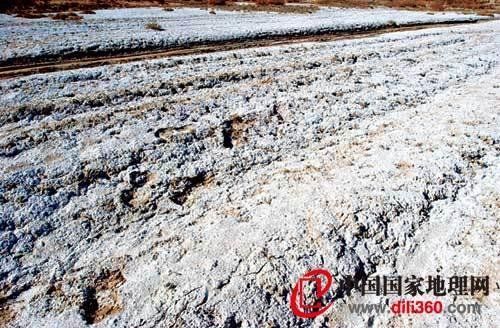 洪水泛濫和大水過境式的農業灌溉下,大量水分滲入地里來不及排泄,地下水位迅速上升,從而加劇鹽分垂直上運過程,使原來的可耕地變成了鹽堿地,農作物不能正常生長,這就是人造的苦澀雪景。