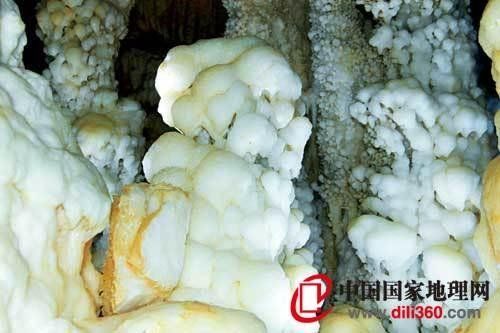 來到美國列楚基勒洞的這個洞廳,就仿佛進入了白雪皇后的“枝形吊燈舞廳”,融化后又重新凝固的硫酸鈣,構成了長6米的透明石膏,比冰雪更為皎潔、更為華麗。中國的溶洞也毫不遜色,重慶雪玉洞的碳酸鈣石筍和石盾,有著凝脂的質感,仿佛可口的“洞穴牌”冰激凌。