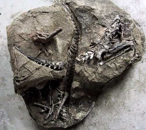 2001年在中國(guó)的一個(gè)恐龍死亡坑內(nèi)發(fā)現(xiàn)的一只泥潭龍骨骼化石,它可能是一種食草獸腳類恐龍。正式描述泥潭龍是在2009年,由于長(zhǎng)有令人迷惑的“手”,一些專家認(rèn)為這種恐龍的肢體與鳥類的翅膀存在聯(lián)系。