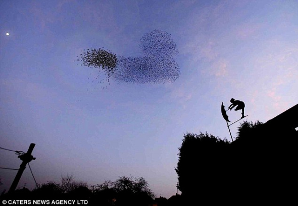 英國數千椋鳥群飛奇觀:隊形酷似烏龜鴨子(圖)