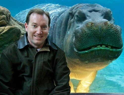 當(dāng)這對(duì)夫婦交換位置,由勞倫給杰伊拍照時(shí),這只3噸重的河馬又適時(shí)地露出一個(gè)微笑。這些令人難以置信的照片是他們?cè)谑サ貋喐鐒?dòng)物園拍到的。他們將這些照片上傳到網(wǎng)絡(luò)上后,很快發(fā)現(xiàn)它們出現(xiàn)在從美國(guó)查塔努加到中國(guó)的博客及聊天室里。杰伊表示,奧迪斯和一只名叫弗娜尼的雌河馬剛剛被放在一個(gè)水族館里,它們一直在為統(tǒng)治權(quán)而爭(zhēng)斗,因此奧迪斯背上有很多傷痕。