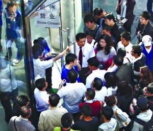 9月29日,三里屯蘋果店“暫停營業”,只讓購買iPhone 4的預約客戶進入。很多消費者守在門口不愿離去。