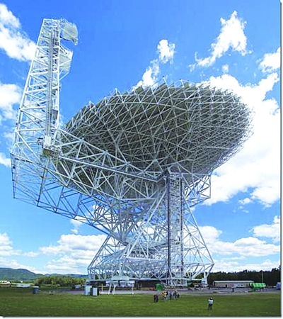 “格林班克”望遠鏡到底是什么呢?中國科學院紫金山天文臺王思潮研究員告訴記者,它是世界上搜尋地外文明的最靈敏的望遠鏡,有43層樓房高,其圓盤比足球場還大,位置是在美國一個比較安靜的地方,避免干擾。在上周六已經開始投入使用。