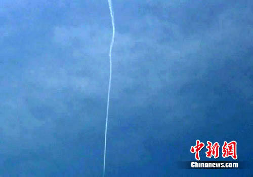 出現(xiàn)在天空的白色軌跡。中新網(wǎng)發(fā) 谷華 攝