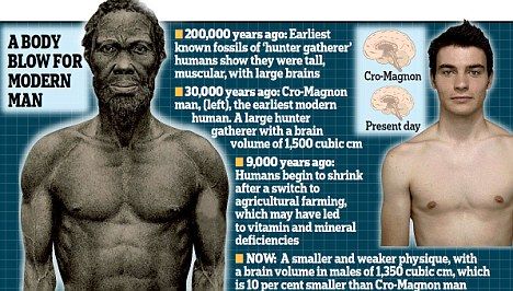 英國《每日郵報(bào)》報(bào)道,登上月球和征服珠穆朗瑪峰可能讓很多現(xiàn)代人認(rèn)為,我們做到了青出于勝于藍(lán),要比古代祖先更出色。然而,單就身體而言,我們已無法與古代祖先相提并論。根據(jù)英國科學(xué)家的研究,人類的體型和大腦一直處于萎縮狀態(tài)。