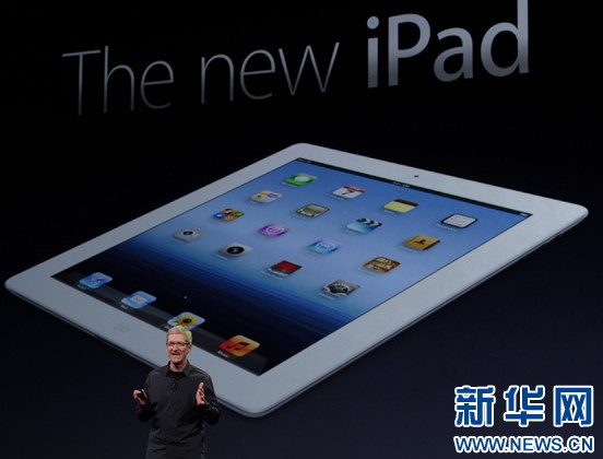 3月7日,蘋果公司在美國(guó)加州舊金山舉行發(fā)布會(huì),推出第三代iPad平板電腦。這是蘋果公司CEO庫(kù)克介紹第三代iPad。 新華社發(fā)