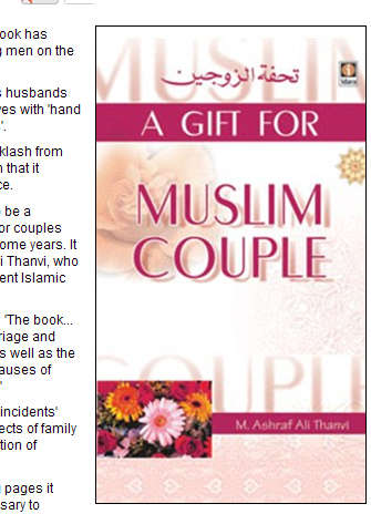 伊斯蘭教學(xué)者馬拉維·阿什拉夫·阿里·坦維(Maulavi Ashraf Ali Thanvi)在其新書《送給穆斯林夫妻的禮物》中告誡丈夫,毆打妻子才是婚姻幸福之道。他在新書的首頁(yè)上稱:“丈夫應(yīng)該帶著善意和愛(ài)意對(duì)待妻子,如有必要應(yīng)動(dòng)用力量控制妻子或者威脅她們。”