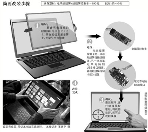 北郵大學生詳解筆記本改觸摸屏:花費190元(圖)