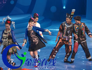 輕快的舞步折射貴州前進(jìn)的風(fēng)姿,火紅的絲帶牽動黔滬濃濃的真情,當(dāng)晚20點10分,節(jié)奏歡快的開場舞《真情紅絲帶》一下調(diào)動起觀眾的情緒。散發(fā)出鄉(xiāng)土氣息的布依族舞蹈,輕盈舒緩的土家族弦樂,神秘的甲骨文“水書”……,17名“民族姑娘”用一系列極具民族韻味的才藝展示,把觀眾帶進(jìn)了神秘的貴州高原。其中,剛剛在央視青歌賽上奪得原生態(tài)組銀獎的“蟬之歌”組合的兩位侗族姑娘的出現(xiàn),備受歡迎。演播廳內(nèi),掌聲不斷。