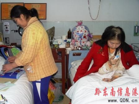 2月26日,當記者再次來到黔東南州醫院看望躺在病床上的唐激云時,卻得到了小激云準備27日將轉院到重慶新橋第三軍醫大學去做骨髓移植手術的消息。小激云的媽媽程仁英女士告訴記者,自從2007年9月小激云患病入院治療以來,先后到過施秉縣醫院、黔東南州醫院、貴醫附院醫治過,前后已花去住院費,醫療費共117704元。到目前為止,各單位、個人、社會人士共捐助愛心款153800元。然而,2007年12月19日,其父唐國祥卻因病醫治無效而撇下母女倆去逝了,母親又是下崗工人,家庭更是雪上加霜。“現在家里唯一值錢的東西就是施秉的房子了,在走之前我要去施秉托人把房子賣了,好得錢去給激云做下一步的骨髓移植手術啊!”小激云的媽媽悲痛欲絕地說。