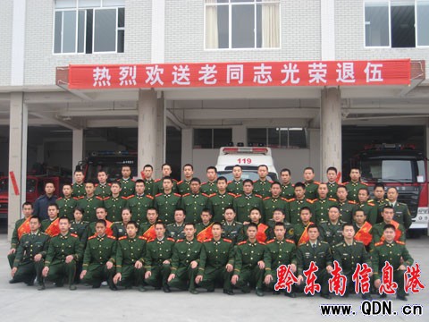 本港訊 (記者 楊驥)11月25日,凱里市消防隊21官兵身帶紅花,在黔東南州、凱里消防官兵的聲聲祝福中,光榮退伍(1人轉業)。21名戰士分別來自山東、浙江、重慶、四川、廣西、云南、貴州等省市。其中,來自貴州六盤水的一名戰士自1997年入伍,至今已有13年。