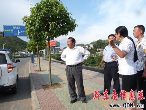 本港訊 (劉軍 攝 特約記者 唐光新)8月15日,凱里市市委副書記、市長洪金洲率有關部門負責人到凱里市西出口檢查了凱里市高速公路西出口交通設施改進和綠化工程。