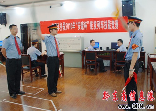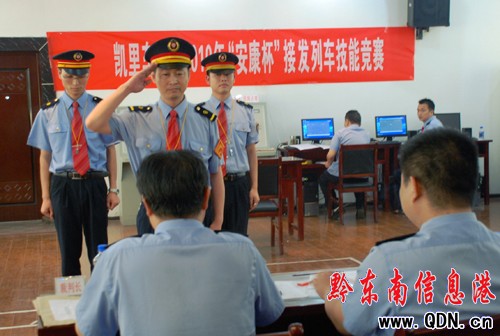本港訊 (通訊員 江澤鵬 攝影報道)為認真落實“十百千萬”人才培養(yǎng)戰(zhàn)略,凱里火車站開展了2010年非正常接發(fā)列車業(yè)務技能競賽,來自全站的10名選手參加了車站值班員、助理值班員、信號員和扳道員等4個崗位共6個項目的比賽。