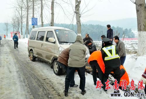 凱里公路管理段路政人員和群眾合力在凱里市境內的320國道1892公里處救援一輛滑進公路邊的小車
