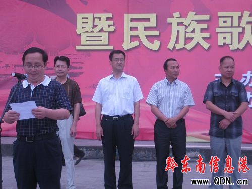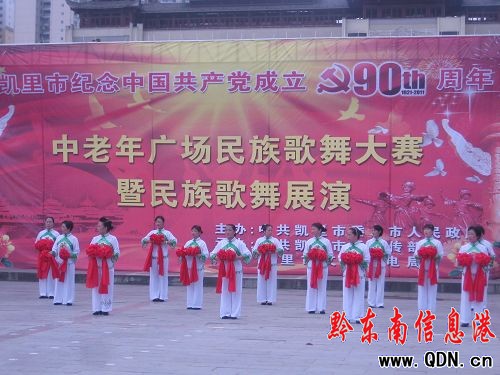 6月14日上午9時,由中共凱里市委、市人民政府主辦,中共凱里市委宣傳部、凱里市文體廣電局承辦的“紀念中國共產黨成立90周年中老年廣場民族歌舞大賽暨民族歌舞展演”在萬博廣場上演。中共凱里市委副書記周文鋒、副市長吳琳平、市委宣傳部副部長潘定杰等出席了本次活動。