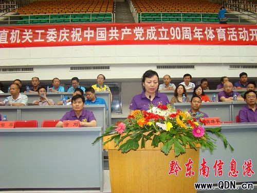 6月20日上午8:30分,州體育場內氣氛熱烈,來自全市各黨組織的體育代表隊歡聚在此,共慶建黨90周年市直機關工委三項體育競賽活動隆重開幕。