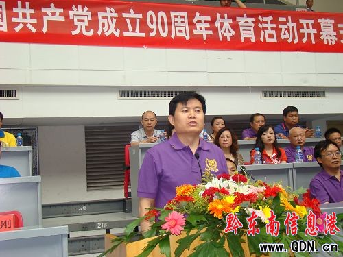 市直機關工委書記鄒琴主持開幕式,開幕式在雄壯的國歌聲中拉開序幕。吳琳平致開幕詞:“這次籃球、拔河、乒乓球三項體育競賽活動,是凱里市慶祝建黨90周年系列活動之一,是活躍市直機關黨員干部文化體育生活的一次盛會,是不斷提高黨員干部健康水平的一項重要舉措,是我市創建全國文明城市,打造文明和諧、健康向上的人文環境的一次有意義的活動。通過舉辦這次活動,檢驗市直機關黨組織的凝聚力和戰斗力�!弊詈�,他預祝本次賽事取得圓滿成功。