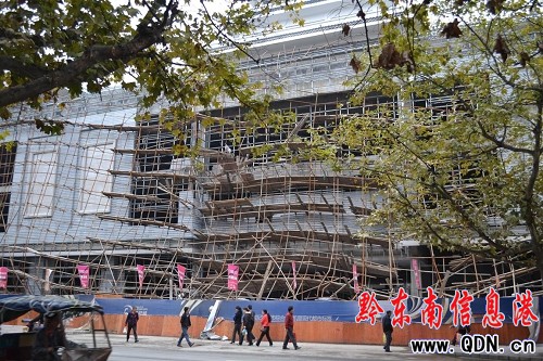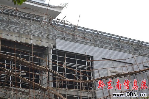凱里文化北路鋼管搭建的外裝修架垮塌