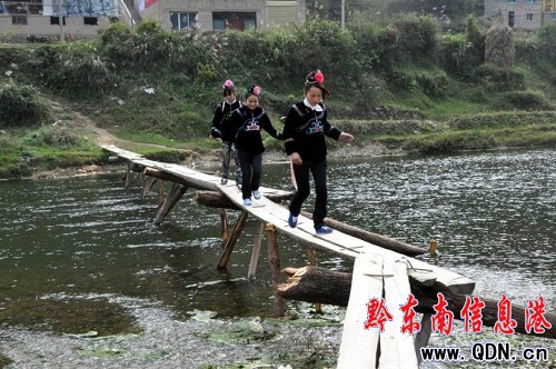 苗家姑娘從橋上過河