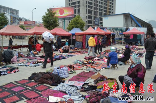 12月3日,記者在凱里市金泉湖仰阿莎廣場附近看到許多苗族、侗族商人到此展示和銷售各種少數民族傳統手工藝產品,其中刺繡產品居多,讓人眼花繚亂、目不暇接。