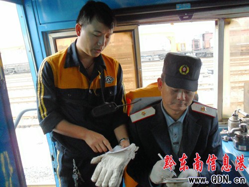 圖為12月20日, 凱里火車站職工認真核對安全重點事項