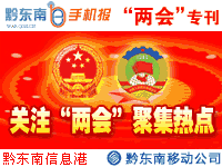 本報攜手黔東南移動、黔東南信息港預祝黔東南州“兩會”取得圓滿成功!本刊在“兩會”期間免費發送,如需定制《黔東南手機報》請編輯短信“0855”發送到10658255,3元/月。