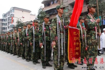 在歡送現場,老百姓把牛奶、水果、雞蛋塞進子弟兵的口袋,幾位老大娘感動著哭著歡送子弟兵歸隊。