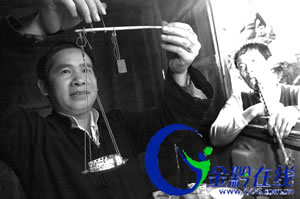 吹管是最原始的銀飾焊接工藝 金黔在線訊 11月10日,是苗族新年第一天,在黔東南自治州,苗族群眾身著盛裝,慶祝自己的民族節日。除了傳統的歌舞等慶祝活動外,苗族婦女多姿多彩的服裝和耀眼的銀飾,成了另一道靚麗的風景。 賣銀飾 “嘿嘿,每年一到這時候,我就可以看見許多苗族婦女戴著我打的銀飾……”銀匠顧永沖得意地說。 已是下午,陽光淡淡地從一尺見方的雕花窗口射進來。燈是油燈,路是土路,屋子是依山而建的吊腳樓,一切都在詮釋著苗族銀飾的古老和神秘。常年的煙熏火燎,板壁已經漆黑,屋里搶眼的是亮閃閃的銀飾成品或半成品,都在放射出耀眼的光芒。作為顧家的第六代銀飾制作傳人,年輕的顧銀匠從13歲就開始在這里錘打編節,已經整整26年了。 特色工藝牛角銀飾 顧銀匠所居住的雷山縣西江鎮烏高苗寨是我省有名的“銀匠村”,村中數百戶人家,80%以銀飾加工為副業。游走于建在斜坡上的村寨,提心吊膽地盯著腳下的路,害怕一不小心會骨碌滾到山下。村里錘煉銀飾之聲不絕于耳,炭火爐煙隱隱飄蕩縈繞。雖然有人從遠方帶來了現代的銀飾制作工藝,但是對固定在銀匠村的銀匠們來說,選擇傳統方法制造出的才是真正的佳品。在這樣的家庭作坊里,多數為師徒傳承的父子組合,也有夫唱婦隨的夫妻組合,顧永沖屬于后者,他的妻子心靈手巧,是刺繡的高手,顧永沖常常從妻子的刺繡設計中得到靈感。 每件銀器都凝聚著工匠的心血 顧家門前坡下的兩棟吊腳樓是村小學,上百個苗家孩子整齊地發出普通話的瑯瑯讀書聲,拉近了山里山外的距離。忽然間明白苗族銀飾的妙處,它和這里的山,這里的人是渾然一體的。本來是俗氣的貨幣僵硬的銀片,經過原始的錘打磨煉脫胎換骨,匪夷所思的工藝和美輪美奐的造型簡直是苗家人的歷史濃縮:他們一直在貌似粗糙的生活中追求精致。 粗陋的工具卻打造出精致的銀器 千百年來苗族把經年累月積攢下的銀質貨幣全都投入了熔爐,只為銅鼓蘆笙繚繞之余加上銀光閃閃佩環丁當。于是有人喜歡從銀匠村里收羅銀飾,在冷冰冰的鋼筋水泥建筑里嗅著銀飾攜帶的農家氣味,浮躁的心緒漸漸沉淀。 作者:白熒