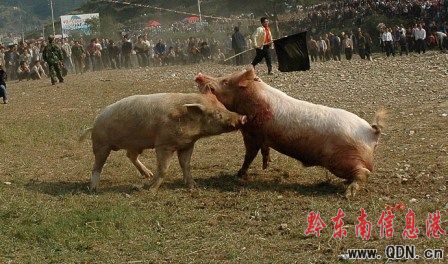 盛況空前“豬打架”令看客大飽眼福(圖)