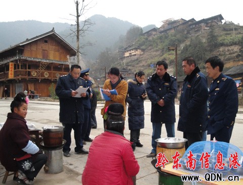 本港訊 (李青連 特約記者 張希才 攝影報(bào)道)2010年元旦和春節(jié)即將到來(lái)之際,為了讓廣大消費(fèi)者能夠吃上“放心”食品,雷山縣工商局開展了全縣城鄉(xiāng)食品安全檢查整治行動(dòng)。