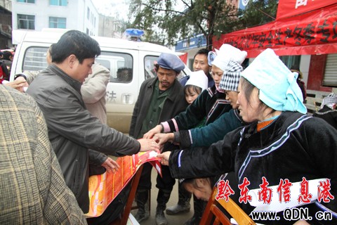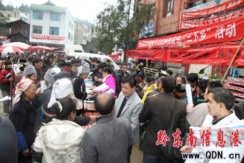 本港訊 (龍懷召 通訊員 侯天智 攝影報道)連日來,由貴州省雷山縣委宣傳部、文明辦牽頭,組織雷山縣人口計生局、文體局、科技局、衛生局、農業局、司法局等16個部門單位,奔赴達地、桃江、永樂等鄉(鎮)巡回開展了豐富多彩的“三下鄉”活動,為老百姓提前送去了節前的“精神年貨”和新年的祝福,受到了廣大農民群眾的熱烈歡迎。