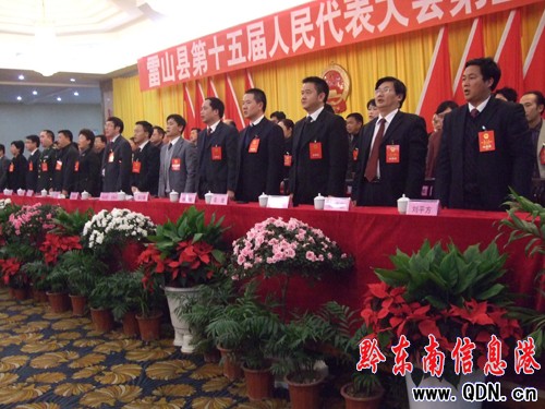 最后,劉光信最后宣布,雷山縣第十五屆人民代表大會第五次會議勝利閉幕,全體起立,唱國歌。(張希才 龍云雄)