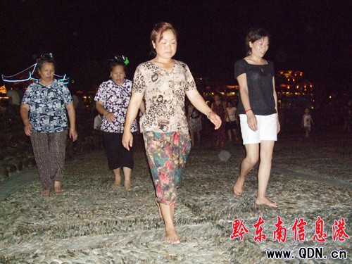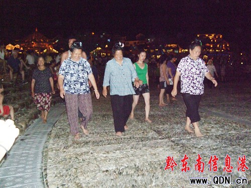 為了消除高血壓隱患,確保身體健康長(zhǎng)壽,自夏季以來,雷山縣開展赤腳穴位按摩活動(dòng),每天晚上來自縣城退休干部、居民的上千名中老年人在縣城民族文化木鼓廣場(chǎng)參加了赤腳穴位按摩活動(dòng)。圖為8月15日在民族木鼓廣場(chǎng)中心(蘆笙場(chǎng))赤腳穴位按摩的場(chǎng)面。(張希才)