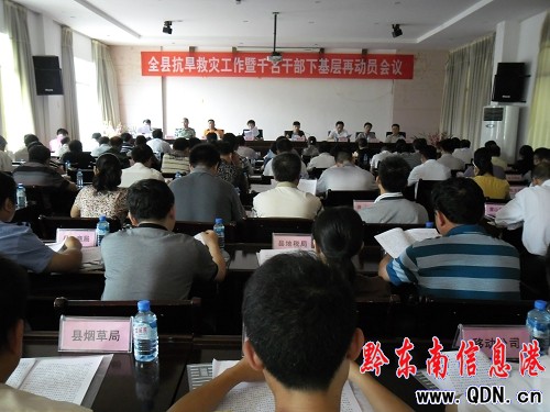 為深入貫徹落實胡錦濤總書記“七一”重要講話精神,切實轉變工作作風、做好新形勢下的群眾工作,進一步深化“四幫四促”活動,積極開展“千名干部下基層,排憂解難促和諧”工作。根據《中共貴州省委辦公廳關于深化“四幫四促”活動實行省直部門單位掛幫聯系縣(市、區、特區)的通知》和《中共黔東南州委辦公室關于在州級部門單位開展“千名干部聯千村”工作的通知》精神,雷山縣研究決定從全縣各部門單位選派干部下基層,到幫扶聯系村扎扎實實開展幫扶群眾工作,幫助推動科學發展,維護和諧穩定,加強基層組織建設,切實推動村級各項工作,確保“十二五”目標任務的順利實現。圖為全縣抗旱救災工作暨千名干部下基層再動員大會會場。(侯天智)
