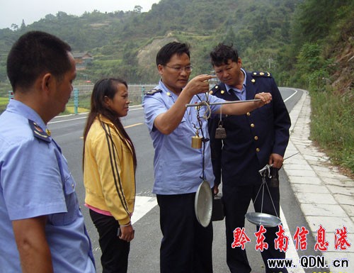 雷山縣工商局執法人員檢查桿秤場景