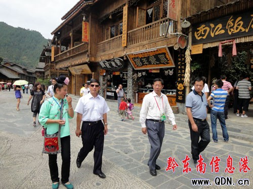9月13日,省工商局羅保林副局長由州工商局局長楊秀海、機關黨委書記楊忠敏和縣工商局局長隆曉明等人陪同,在西江千戶苗寨視察民運會期間旅游市場監管情況。