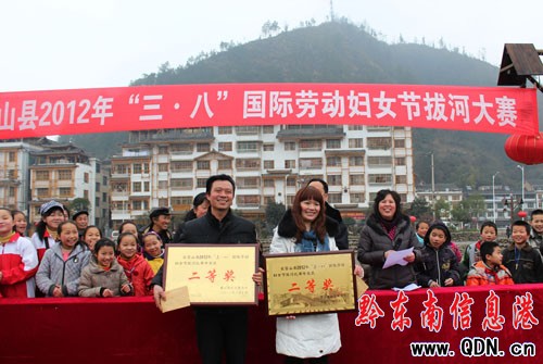 圖為拔河比賽頒發獲得二等將場面(楊華攝)