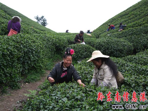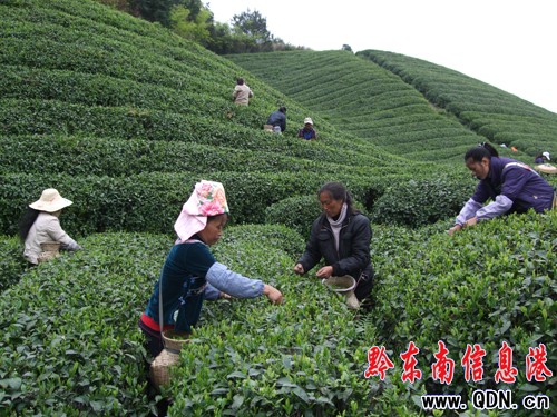 近年來,雷山縣重點加大綠色產業的開發和投入,大力實施“扶強一個企業,唱響一個品牌,培育一個市場,形成一大產業”的茶產業發展思路,緊緊抓住國家實施西部大開發機遇,把茶葉產業作為富民興縣的重要支柱產業來抓,茶園規模迅速擴大,茶葉產量產值逐年增長。目前,全縣發展茶葉面積達7.8萬畝,其中投產茶園4.2萬畝,預計茶青產量達5400噸,產干茶1300噸,預計產品產值可達1.9億元。自3月20日以來,該縣數千名茶農早出晚歸,投入到茶園地搶收季節性茶青。(張希才)