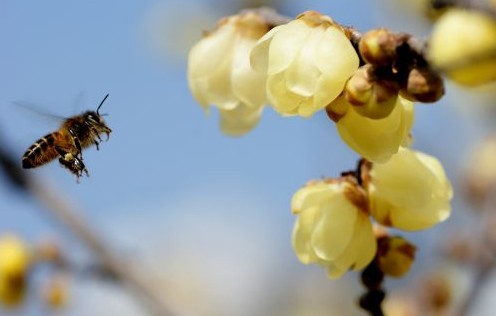 當日,貴州凱里市仰阿莎廣場臘梅花盛開,給人們帶來春天的氣息。新華社發(吳吉斌 攝)