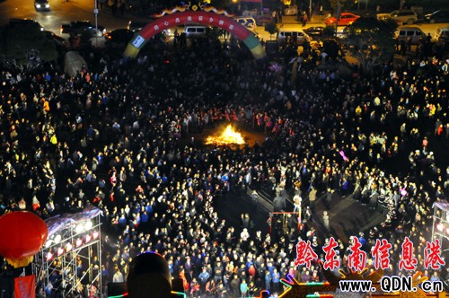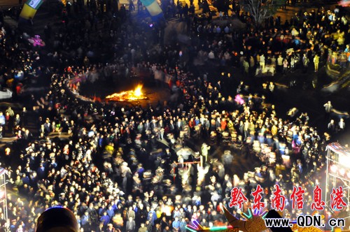 4月17日,2011年貴州苗族姊妹節在臺江縣施洞鎮偏寨村隆重開幕。當日晚,臺江縣城秀眉廣場上人山人海,熱鬧非凡。當地苗族群眾自發舉行盛大的篝火晚會,笙歌載舞,盡情狂歡。(張鴻 攝影報道)