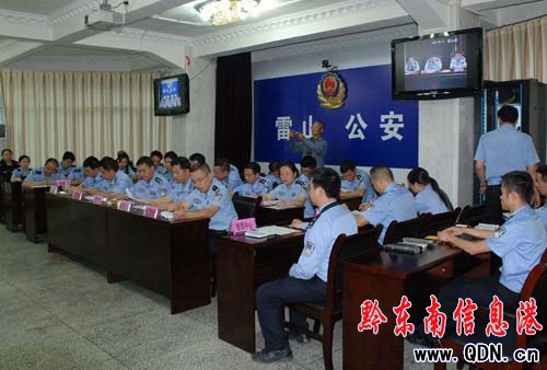 本港訊 (吳超榮 何花 攝影報道)為認真貫徹落實省委石宗源書記、省委常委、政法委書記、省公安廳廳長崔亞東等領導的重要講話精神, 進一步鞏固學習實踐科學發展觀活動成果。6月9日下午,雷山縣公安局召開“忠實踐行宗旨、勤政廉政為民、公正規范執法、促進警民和諧”教育動員部署視頻會。在主會場有局黨委委員,所隊室負責人和局機關民警參加會議,縣看守所、各派出所民警在分會場參加會議。會議由局黨委委員、政委楊秀珠主持,