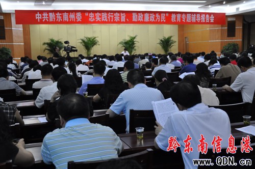 本港訊 (記者 楊驥 攝影報道)根據省委“忠實踐行宗旨、勤政廉政為民”教育活動的總體部署,6月28日下午,中共黔東南州委“忠實踐行宗旨、勤政廉政為民”教育專題輔導報告會在州政府東樓會議室舉行。州委書記廖少華在會上作了《加快經濟發展方式轉變、堅定走生態文明崛起的跨越式發展之路》的專題報告,會議由州委常委、常務副州長馮仕文主持。