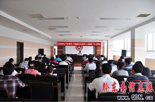 本港訊 (姚仕威 攝影報道)為深入學習貫徹《中國共產黨黨員領導干部廉潔從政若干準則》,全面、正確把握《廉潔準則》的基本精神和主要內容,增強黨員干部廉潔從政意識,8月23日上午,凱里公路管理局認真組織局機關副科級以上領導干部黨員參加了黔東南州《廉潔準則》知識測試答題活動,并于當日下午舉辦一期學習貫徹《廉潔準則》的專題學習輔導講座。