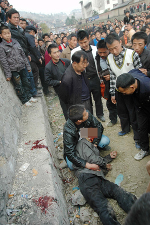2月14日,凱里市舟溪鎮(zhèn)蘆笙會斗牛賽場上演一幕慘�。阂活^水牯牛在追擊另一頭水牯牛時,將一觀看斗牛比賽的男子撞死。