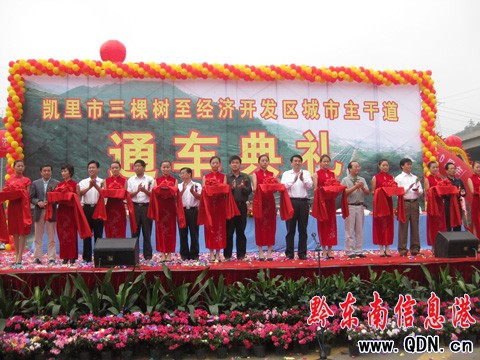 州委書記廖少華宣布三棵樹至經(jīng)濟(jì)開發(fā)區(qū)城市主干道暨凱里直雷山二級(jí)公路仰阿沙廣場(chǎng)直三棵樹段正式通車。
