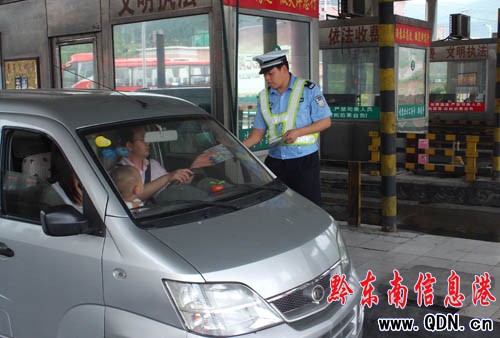 交警同志在西出口發放文明駕駛宣傳單