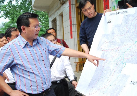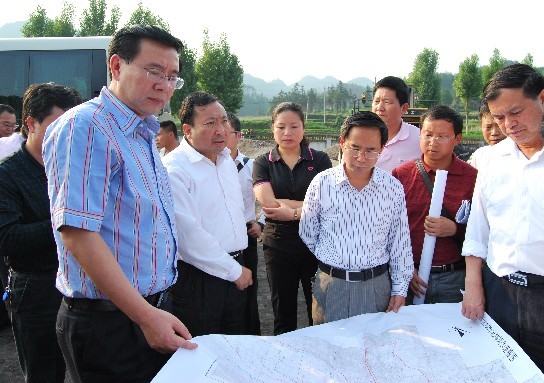 李飛躍一行首先來到下司鎮(zhèn),仔細(xì)察看地形和下司主干道建設(shè)規(guī)劃圖。下司主干道擬修建開發(fā)集民族風(fēng)情、風(fēng)光觀賞、旅游休閑、房產(chǎn)開發(fā)為一體的規(guī)劃區(qū)。李飛躍指出:開發(fā)時,一定要注重環(huán)保。