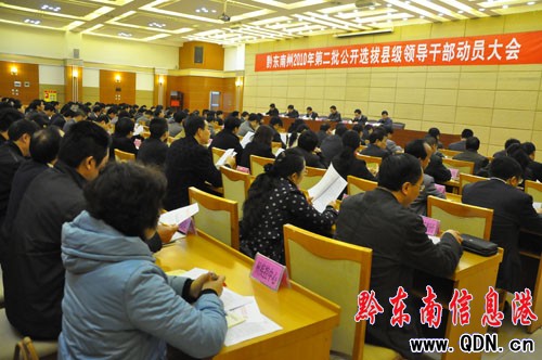 本港訊 (記者 楊驥 攝影報(bào)道)11月24日,黔東南州2010年第二批公開(kāi)選拔縣級(jí)領(lǐng)導(dǎo)干部動(dòng)員大會(huì)在州政府西樓會(huì)議室召開(kāi),記者在會(huì)上了解到,當(dāng)天我州正式啟動(dòng)第二批公開(kāi)選拔縣級(jí)領(lǐng)導(dǎo)干部工作,面向全國(guó)、全省、全州公開(kāi)選拔縣級(jí)干部22名。