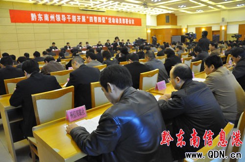 本港訊 (記者 楊驥 攝影報道)12月1日下午,黔東南州領導干部開展“四幫四促”活動動員部署會議在州政府召開。州委書記廖少華在會上指出,安排部署在全州領導干部中開展“四幫四促”活動,是進一步做好新形勢下群眾工作、動員全州各級領導干部把思想統一到加速發展、加快轉型、推動跨越上來的重要舉措。州委副書記、州長李飛躍主持會議時強調,各地各部門各單位要切實開展“四幫四促”活動,認真學習、深刻體會,以對黨和人民事業高度負責的態度投入到實際工作中,為全州經濟社會又好又快、更好更快發展做出新的、更大的貢獻。