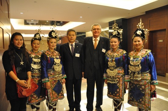 演出結束后,歐盟各國的大使對侗族姑娘和尚•馬龍的演出給予了極高的評價,并一一留影。